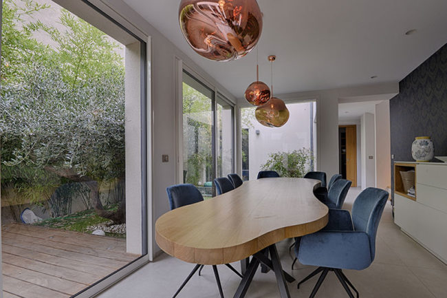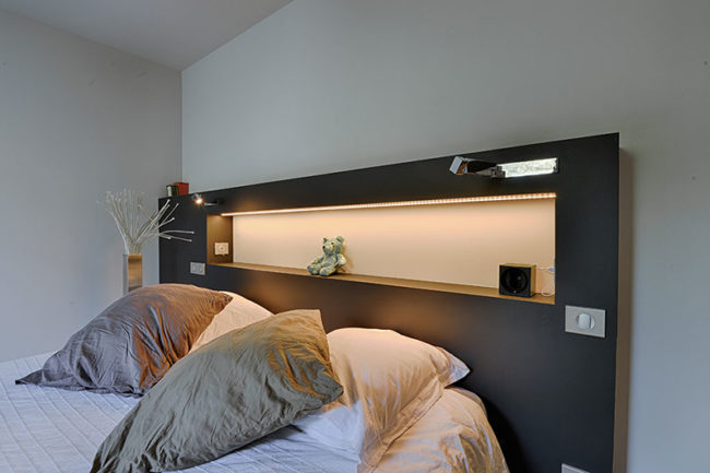 Agencement sur-mesure par les équipes de Vallon Faure pour cette maison à étages située à Valence. Du mobilier bois adapté à chaque élément et des espaces éclairés intelligemment pour un véritable nid douillet.